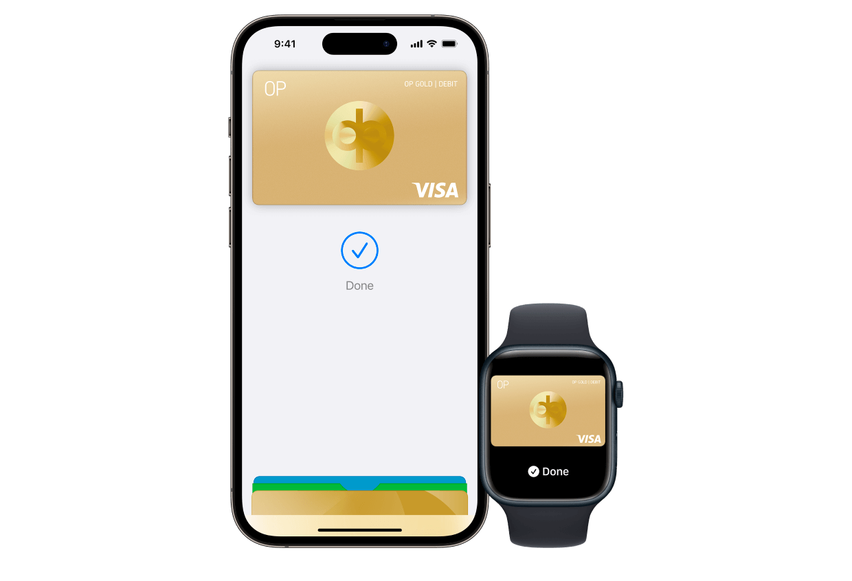 When you pay with Apple Pay, you get the same card services and benefits as when you pay with your card in other ways. For example, as an OP cooperative bank owner-customer, you get Product Protection Insurance for your purchases if you pay with an OP card that has a credit facility.
