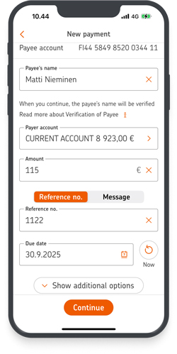 Make sure that your payment goes to the right place: Check the account number and the payee's name so your money reaches the intended recipient. If you send the payment to the wrong person or to a fraudster, you may not get your money back. Payments are always transferred to the payee based on the account number. Keep this in mind also when you're expecting a payment to arrive.