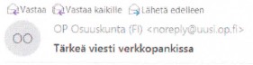 Det har sänts falska e-postmeddelanden i OPs namn med rubriken "Viktigt meddelande i nätbanken". I de falska e-postmeddelandena hänvisas till ett meddelande i nätbanken som ska läsas genom att klicka på en länk i e-postmeddelandet. I meddelandet berättas det också att kontot av säkerhetsskäl har spärrats då utloggningen ur nätbanken inte gjorts med knappen Logga ut. Enligt meddelandet kan spärrningen avlägsnas genom att logga in med koder via länken i meddelandet.