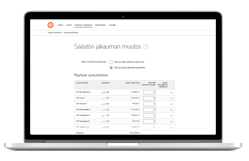 Uusi ominaisuus mahdollistaa sijoituskohteiden muutokset myös asiakkaille, joilla on vakuutussäästössään keskeytettyjä rahastoja kuten OP-Venäjä. Ominaisuus on tällä hetkellä käytettävissä op.fi-palvelussa ja tulossa OP-mobiiliin myöhemmin.