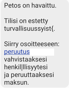 Messages sent by the fraudsters may in your phone end up in the same thread with real messages. The content of phishing messages may vary quickly. The phishing messages circulated previously have looked like this: