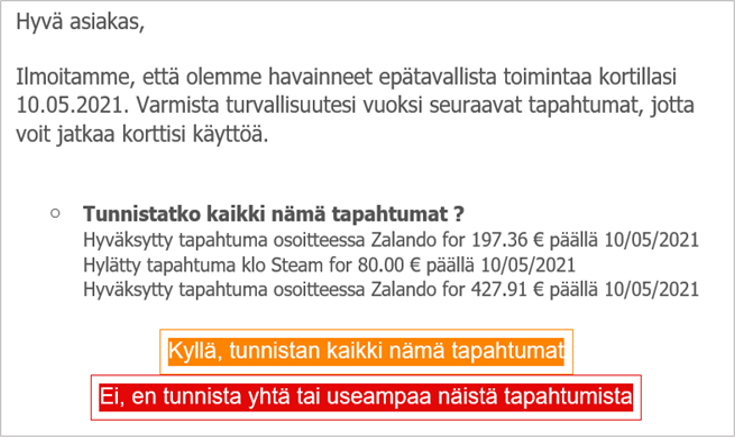 Messages sent by the fraudsters may in your phone end up in the same thread with real messages. The content of phishing messages may vary quickly.