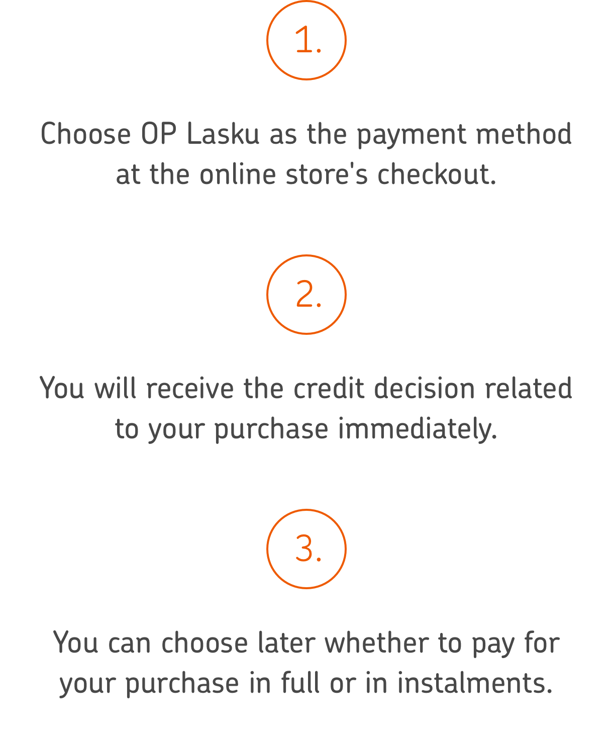 OP Lasku is a payment method for special everyday purchases online. It is intended for customers of any Finnish bank.