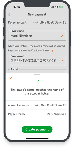 Make sure that your payment goes to the right place: Check the account number and the payee's name so your money reaches the intended recipient. If you send the payment to the wrong person or to a fraudster, you may not get your money back. Payments are always transferred to the payee based on the account number. Keep this in mind also when you're expecting a payment to arrive.