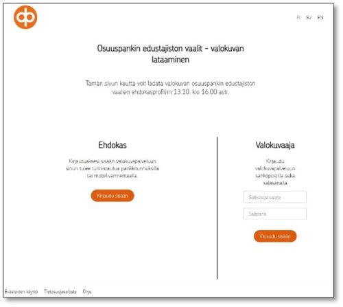 Ehdokkaan ehdokaskuva julkaistaan osuuspankkien edustajiston vaalien 2025 vaalikoneessa ja sähköisessä äänestyspalvelussa.