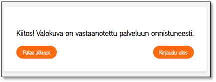 Kuvan tallentamisen jälkeen voit lisätä uuden ehdokaskuvan painamalla Palaa alkuun -painiketta, tai kirjautua ulos palvelusta Kirjaudu ulos -painiketta painamalla.