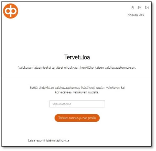 Valokuvaustunnus lisätään kirjautumisen jälkeen avautuvan sivun lomakekenttään. Tämän jälkeen painetaan Tarkista tunnus ja hae profiili -painiketta.