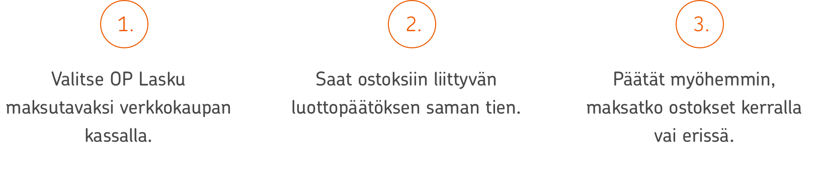 OP Lasku is a payment method for special everyday purchases online. It is intended for customers of any Finnish bank.