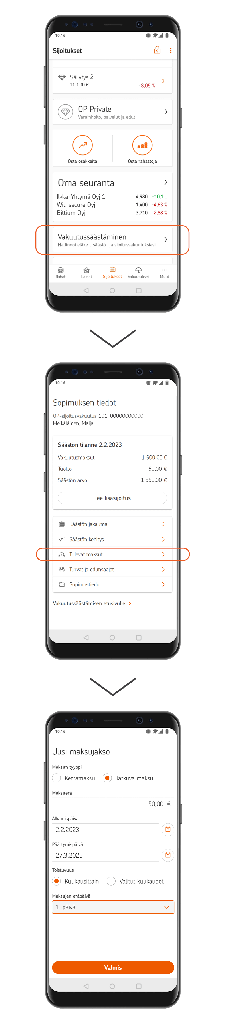 Seuraamalla säästöjesi kehitystä säännöllisesti, pysyt ajan tasalla. Digipalvelussamme voit tarvittaessa hajauttaa tai vaihtaa sijoituskohteita esimerkiksi maantieteellisen sijainnin mukaan. Myös lisäsijoitusten teko, maksusuunnitelman muutos tai edunsaajan vaihtaminen onnistuu kätevästi. Digipalvelussamme tekemäsi muutokset ovat sinulle maksuttomia. Helpota arkeasi digipalvelumme avulla.Voit asioida digitaalisessa palvelussa mobiilisovelluksella tai selaimella.