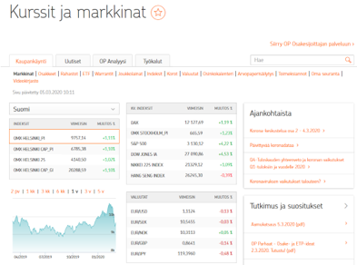 Tjänsten Kurser och marknader är tillgänglig endast genom att logga in i op.fi. Tjänsten är ur bruk för kunder som inte är inloggade.