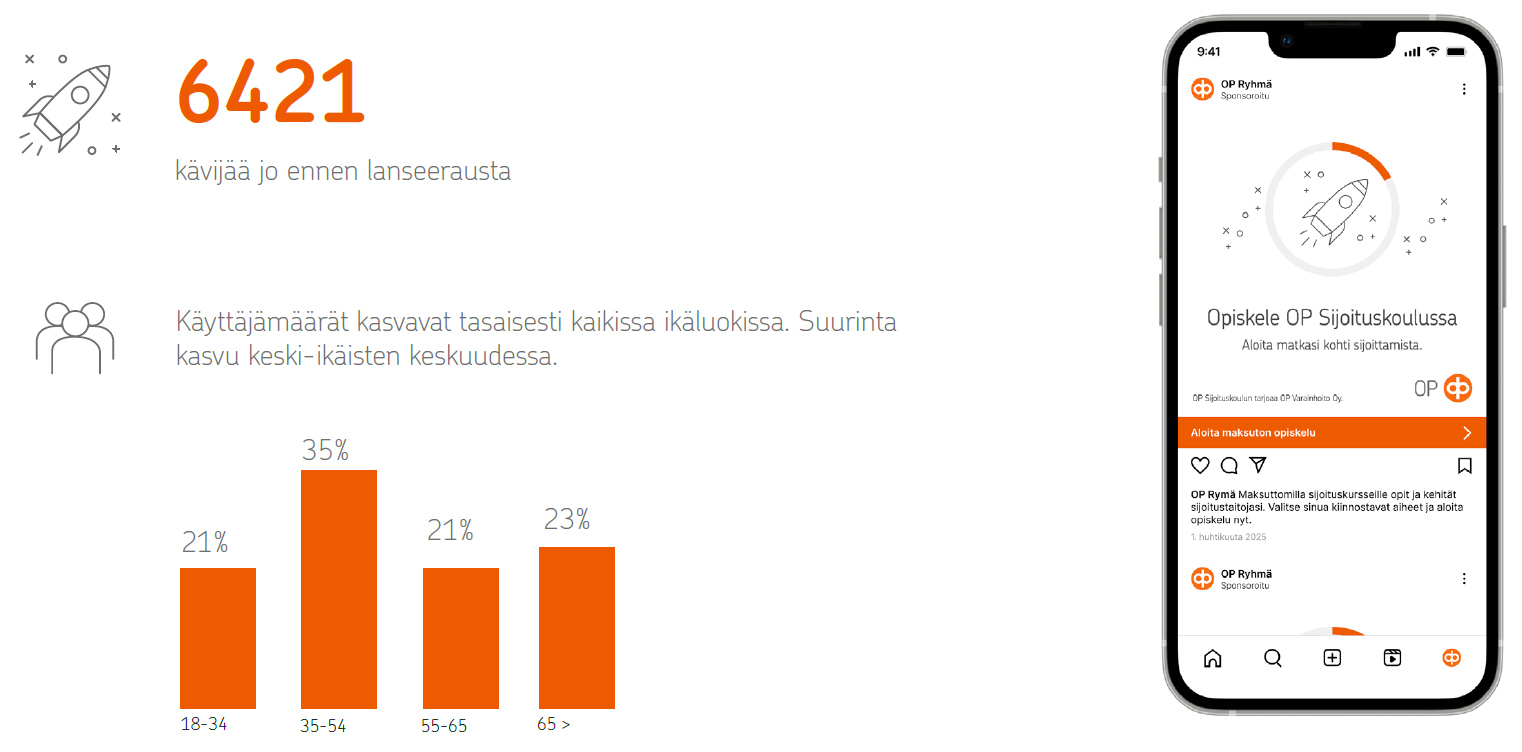 Laadullinen tutkimus osoitti, että vasta-alkajat hyötyisivät OP Sijoituskoulusta. Määrällinen tutkimus puolestaan valaisi, että OP Sijoituskoulusta hyötyisivät myös keski-ikäiset ja jo sijoittavat nuoret.