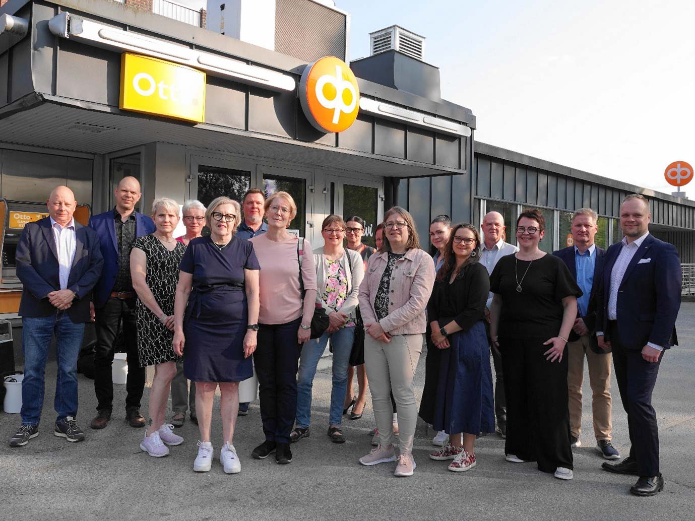 Kuvassa OP Savonmaan hallintoneuvoston kokouksessa paikan päällä olleet hallintoneuvoston, hallituksen ja johtoryhmän jäsenet Tuusniemen konttorin edessä. Nimet vasemmalta alkaen Rauno Hämäläinen, Tatu Miettinen, Kirsi Miettinen, Ulla-Maija Karvonen, Terttu Nuutinen, Kimmo Honkanen, Anne Simonen-Ruuskanen, Katri Ruokolainen, Tarja Nykänen, Satu Jäntti, Kirsi Karttunen, Emmi Tunkkari, Iida Sallinen, Vesa Hanhijoki, Minna Jaakkola, Markku Granander ja Jari-Pekka Raatikainen