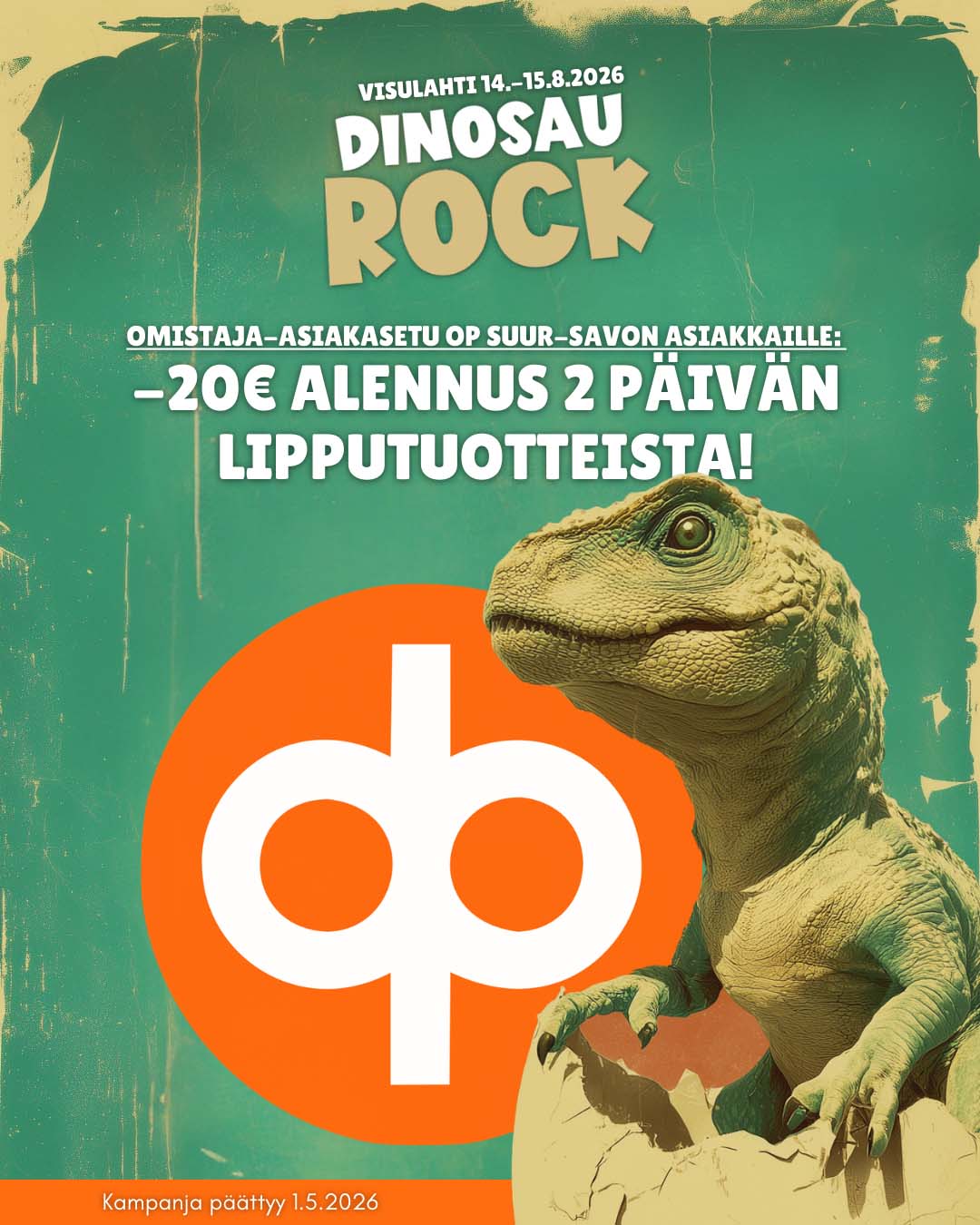 Omistaja-asiakasetu Dinosaurockin 2 päivän lipuista
