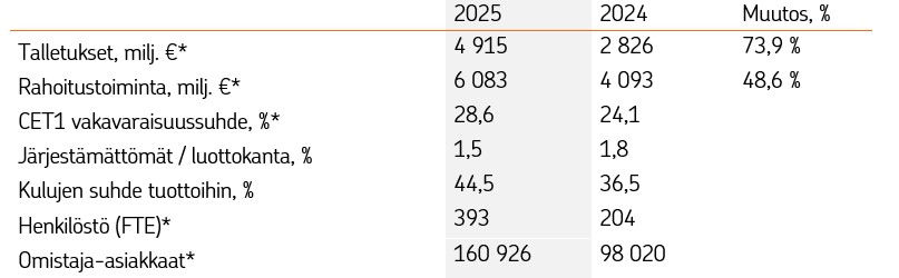 Osuuspankeista myönnettiin pienille ja keskisuurille yrityksille rahoitusta euromääräisesti 33 prosenttia enemmän kuin vuonna 2024. Kehitystä tuki OP Pohjolan luottopolitiikan keventäminen sekä pk-yritysten rahoitusprosessin sujuvoittaminen ja nopeuttaminen.