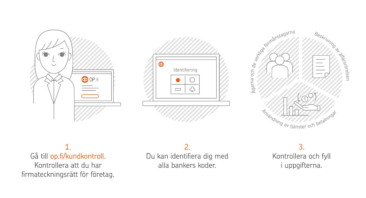 Lagstiftningen kräver att vi har tillräckliga och uppdaterade uppgifter om våra kunder. Med uppdaterade uppgifter kan vi också betjäna företagen så säkert och smidigt som möjligt. Vi ber därför om uppgifter om bland annat företagets ägare och affärsverksamhet.