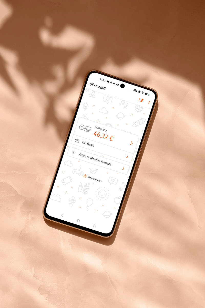 Barn under 15 år kan följa kontotransaktionerna och saldot i OP-mobilen. Dessutom kan barnet bekräfta inköp och kortbetalningar med Mobilnyckeln på nätet och i appar.