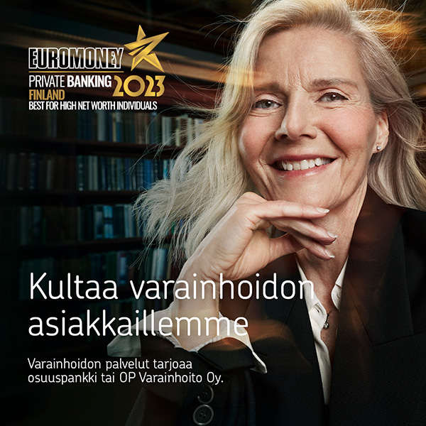 OP Private -palvelu on palkittu Suomen parhaana kansainvälisessä Euromoneyn Private Banking Awards -kilpailussa. Voitimme 2025 Paras Private Banking -palvelu Suomessa sekä Vastuullisin Private Banking -palvelu Suomessa -sarjat.